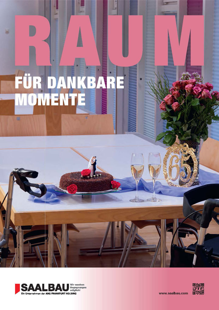 Die Plakate hängen inzwischen in allen Saalbauten. Bleiben Sie doch einmal stehen, um sie in Ruhe zu betrachten und das Dankeschön der SAALBAU entgegenzunehmen.